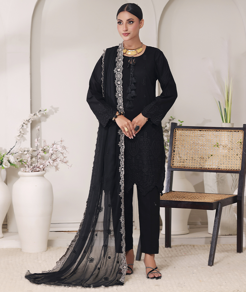 Embroidered Chikankari 3 piece unstitched suit – Dark Desire